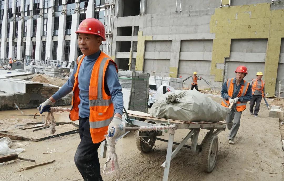 金融總部傳媒中心項(xiàng)目現(xiàn)場到處都是一片熱火朝天的施工景象。